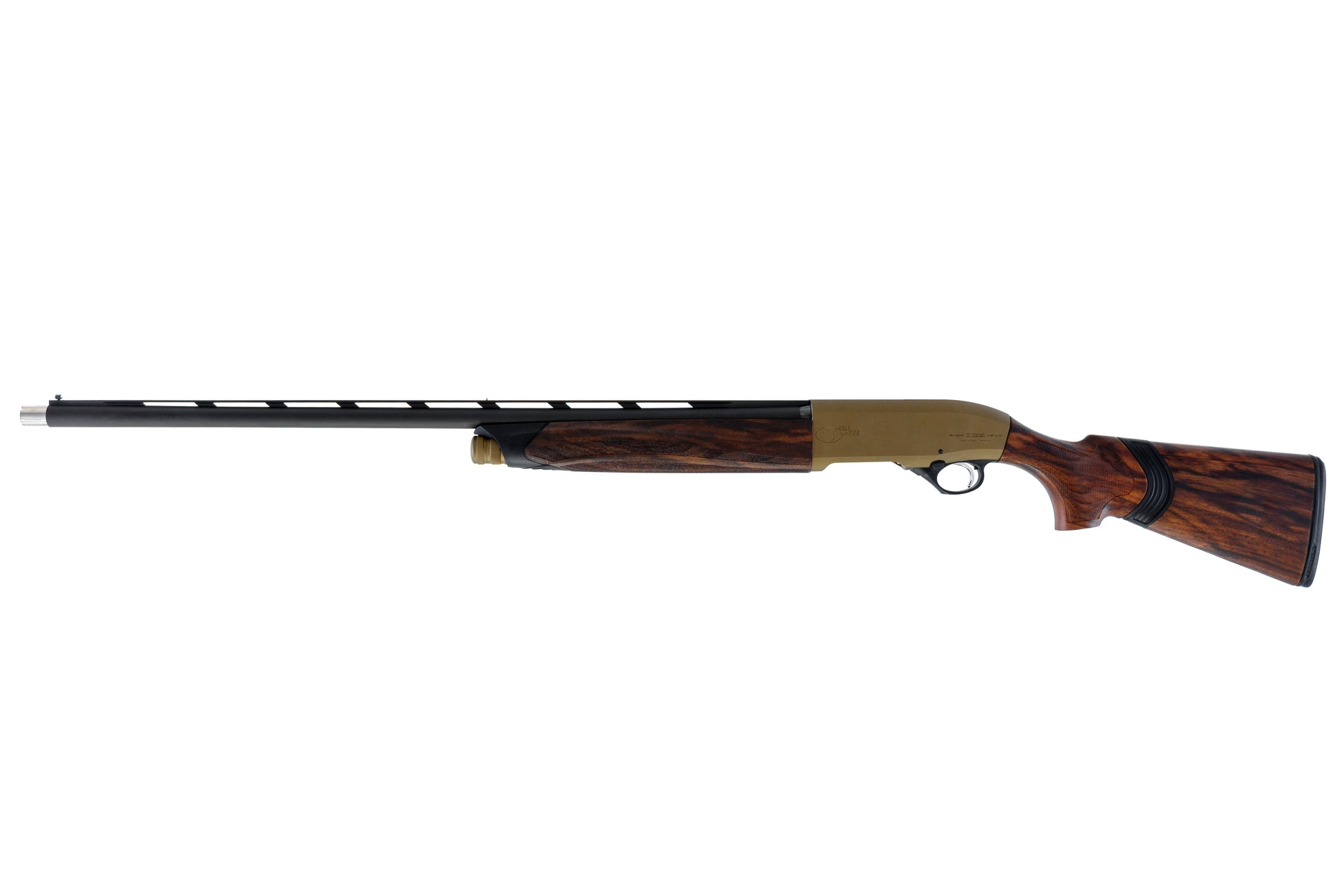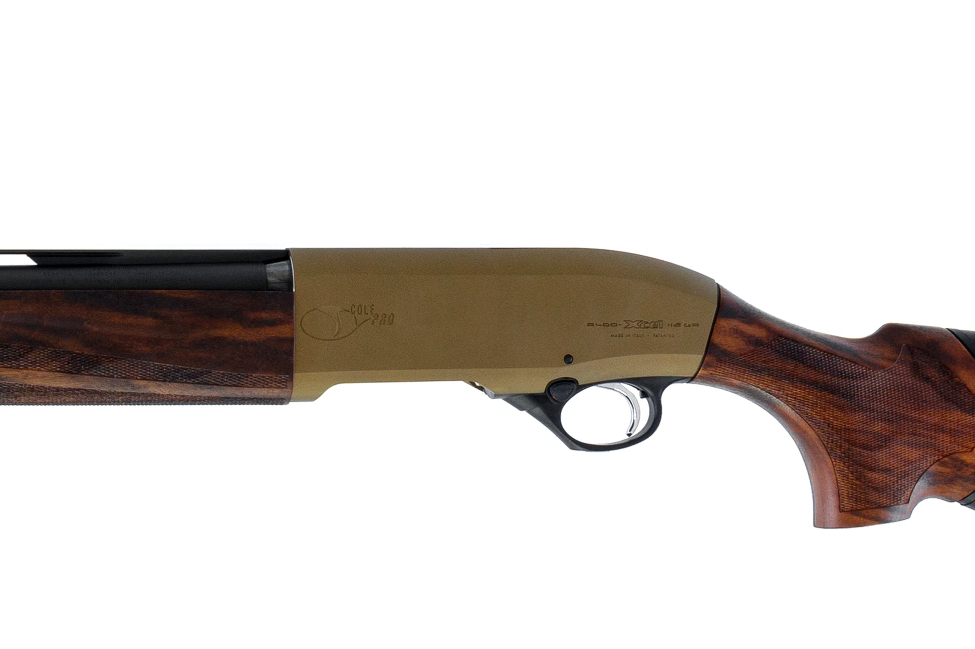 This Beretta A400 Cole Pro has a Midnight Bronze Cerakoted receiver for a unique look and durable finish, with a Cole Precision black oversized cocking handle and bolt closer.
