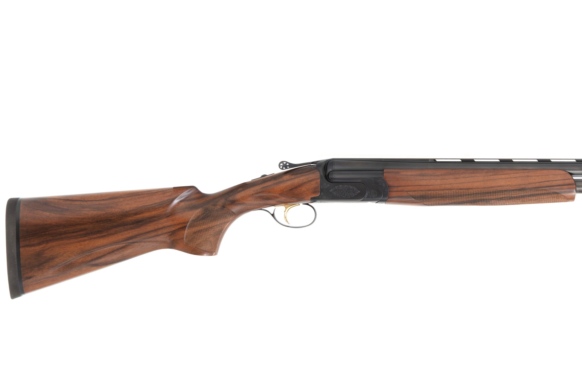 Beautiful new High Tech S from Perazzi. This gun features high contrast and high figure furniture in a satin urethane finish. The receiver is engraved in an elegant Lusso scroll pattern with a pierced top lever. Fixed chokes and fixed trigger group with coil springs and selector.